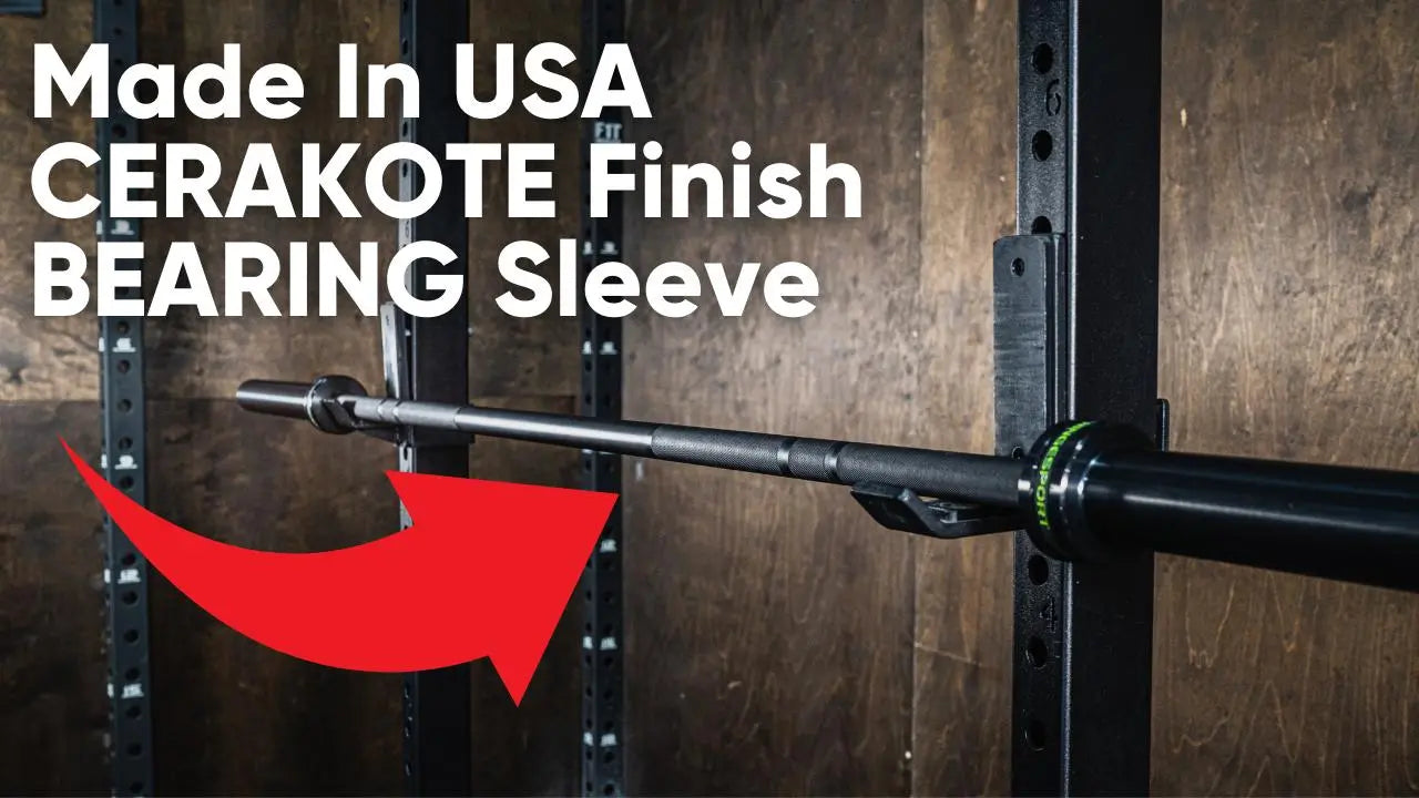 The sleeves are one of the best parts of this amazing barbell because there’s freakin’ needle bearings in them. Not just one… but 28 needle bearings for amazing spin in your hands. As you’re going from ground to shoulder, shoulder to overhead, even ground to overhead, you’re going to very much appreciate that this barbell has a nice, predictable, buttery, smooth and fast spin.