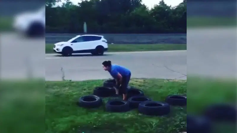 - Take turns throwing the medicine ball into the opposing team's tires.