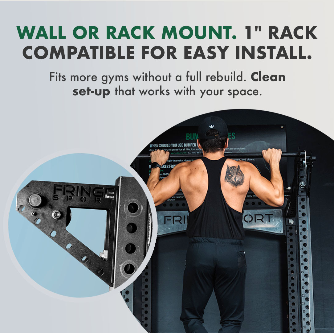 A matte carbon fiber grip delivers a premium, tactile feel you won’t find on cold steel. Integrated pulleys open up band work, accessories, and cable-style movements without adding bulk or extra attachments. Adjustable fitment lets it mount cleanly to your rack or directly to the wall, giving you full control over your space.
