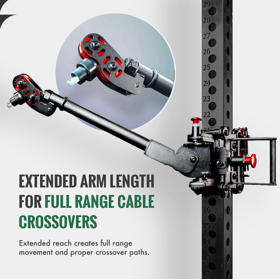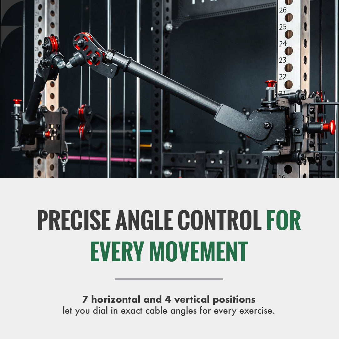 The Gibbon Arms extend the cable path away from the uprights and introduce precise horizontal and vertical angle control. This transforms the Dane 2.0 into a true cable crossover system, allowing full stretch, natural arm paths, and cleaner alignment for flys, presses, curls, rows, and single-arm movements.