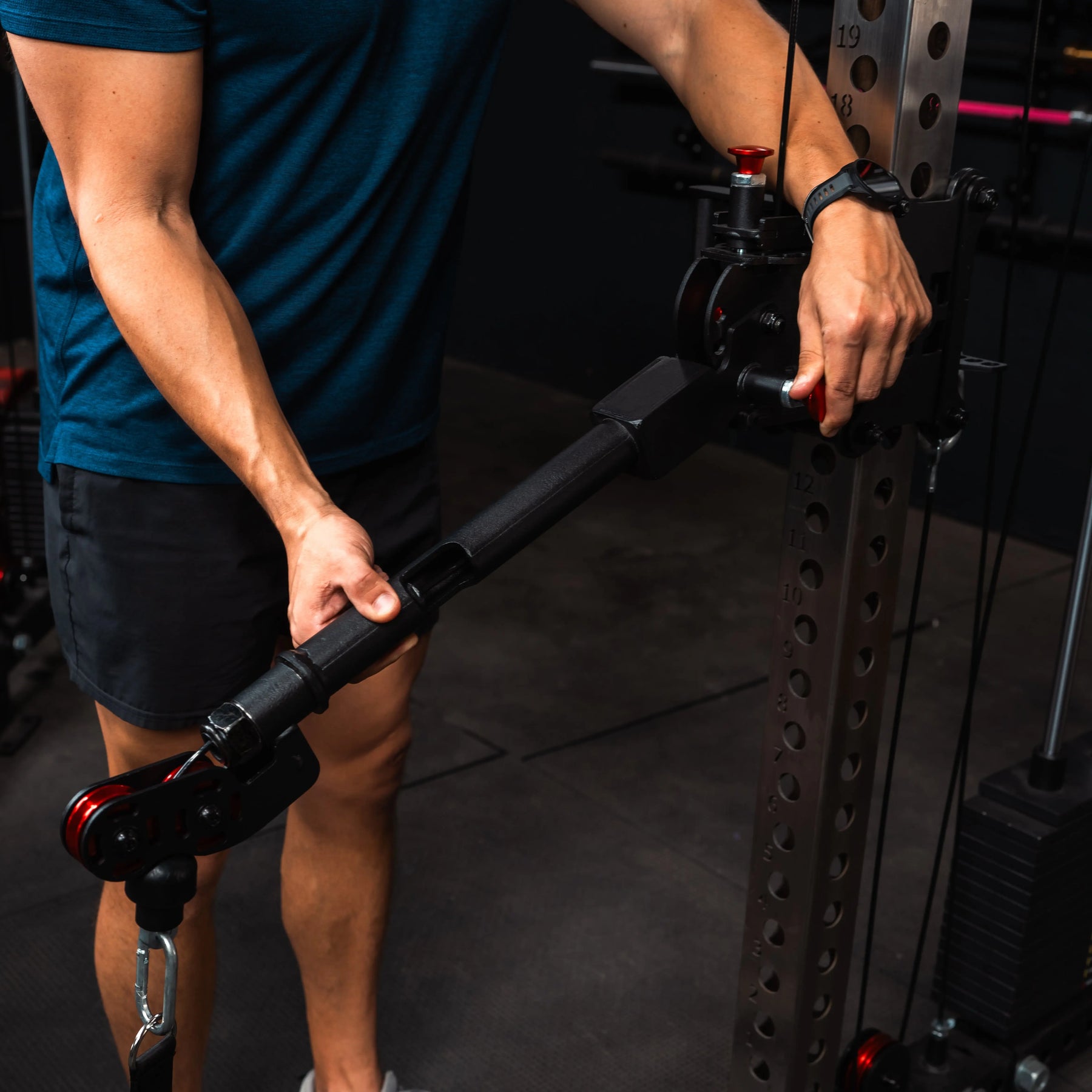 On its own, the Dane 2.0 provides true 1:1 resistance, smooth trolley adjustment, and nearly six feet of cable travel outside the rack. With Gibbon Arms installed, the system goes further.