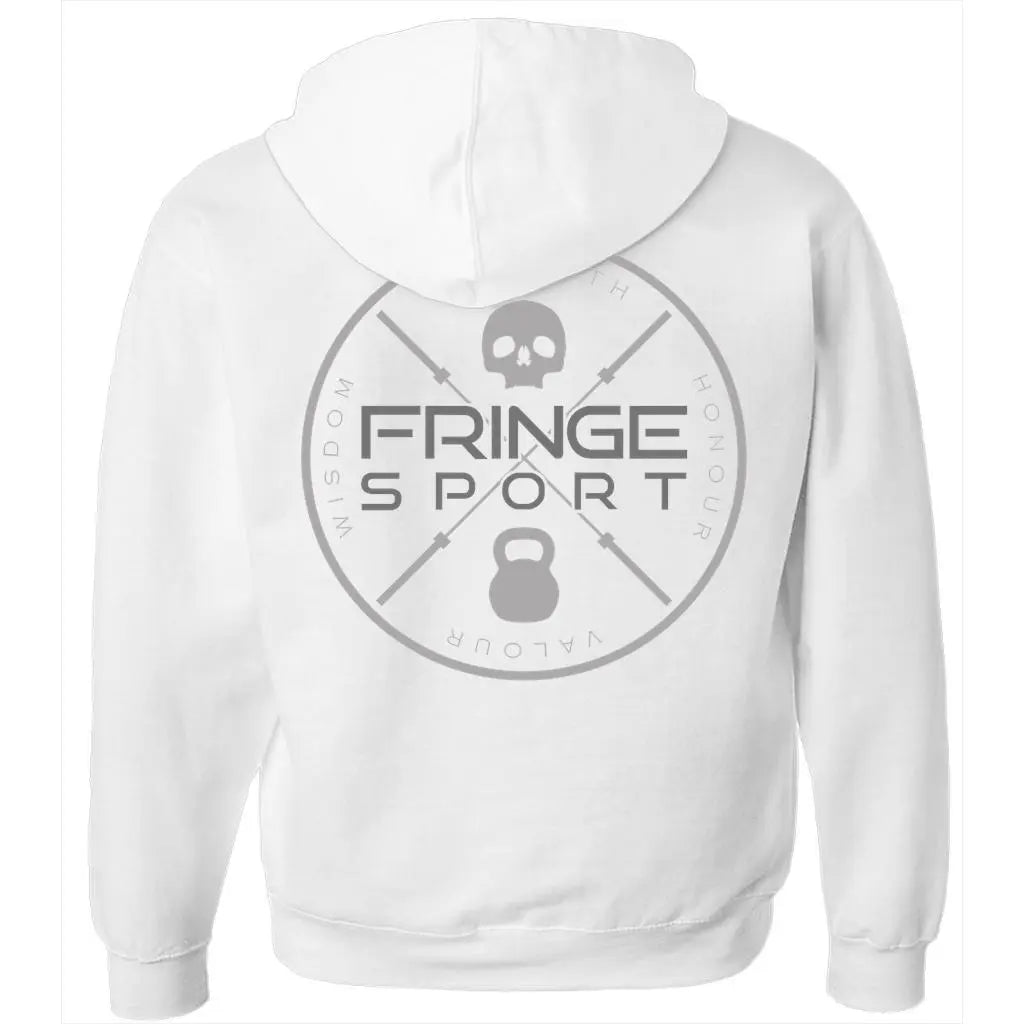 Incredibly soft and snug, this fleece hoodie features a full zip closure with white taping, ribbed cuffs and waistband, kangaroo pockets and white cord drawstring.