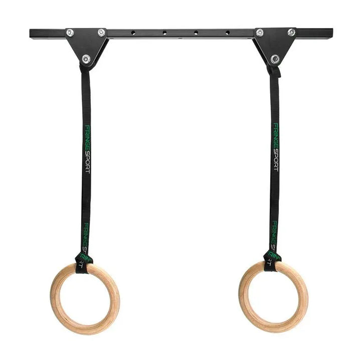 To be lord of the rings, you'll need our weight-bearing ring hanger that uses space efficiently and has the versatility to be installed in your garage, gym or wherever you prefer. This perfect, professional answer fits all Fringe Sport rings and adjusts so you set the distance between the rings to your exact fit.